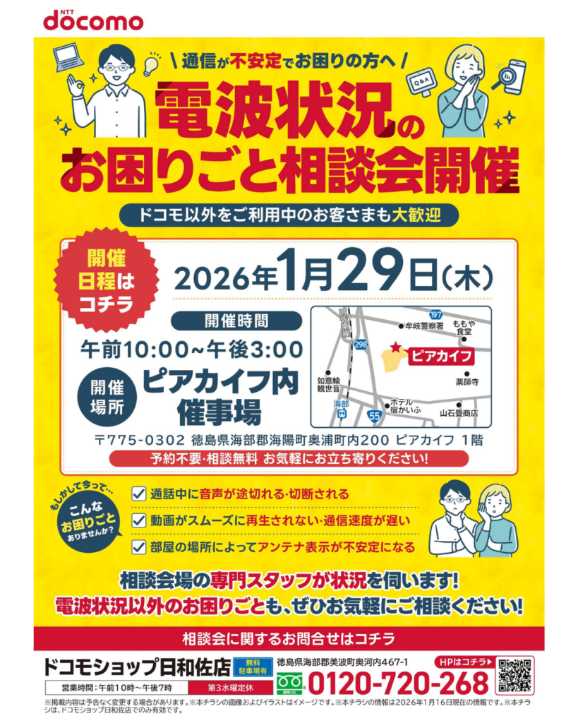 - イベント情報, サービス案内, ドコモショップ日和佐店, 店舗からのお知らせ